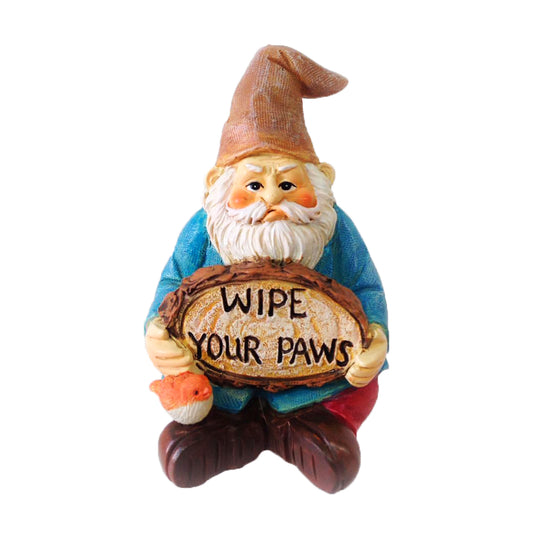Fairy Garden Gnome - Gnome Holding Wipe Your Paws Sign