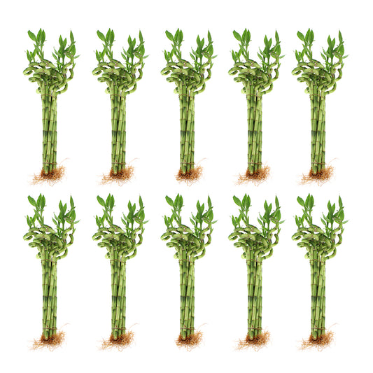 12" Live Lucky Bamboo Plant Spiral Stalks | Bundles of 10 & 100